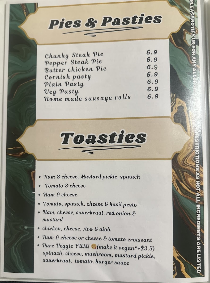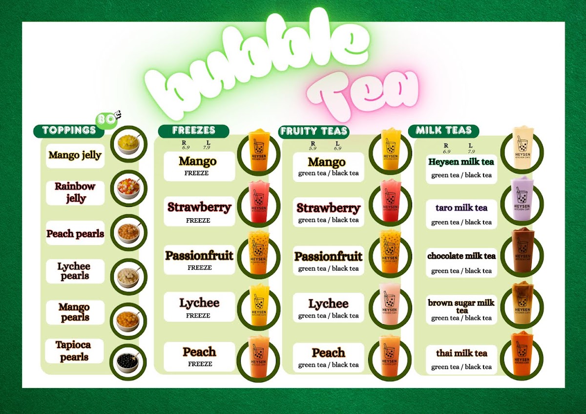 From a reviewer’s perspective, the menu at Heysen Kitchen Cafe offers a well-rounded and approachable dining experience that comfortably caters to breakfast lovers, casual lunch seekers, and anyone in between. The Menu Day - Baked Pies, Sausage Rolls & Pasties section stands out for its comforting classics such as Hot Pies, Homemade Sausage Roll, and Hot Pasties, ideal for a quick and satisfying bite. Beverage options are equally diverse, ranging from refreshing cold drinks like Juice - Bottles, Cafe Latte On Ice, Royal Mango Lassi, Mixed Berry Smoothie, and Red Bull, to bubble tea favorites including Mango Fruity Tea, Strawberry Freeze, Peach Fruity Tea, Strawberry Fruity Tea, Lychee Fruity Tea, as well as cafe-style choices like Passion Fruit Freeze and Passion Fruit Fruity Tea.